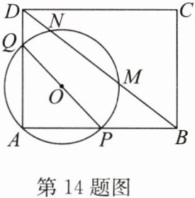 14. 如图,在矩形ABCD中,AB= 20,AD= 15,P,Q分别是AB,AD边上的动点,PQ= 16,以PQ为直径的⊙O与BD交于点M,N,求MN的最大值.