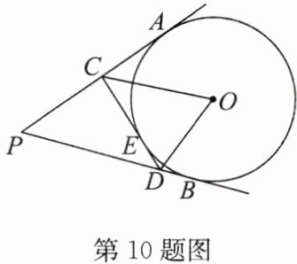 10.如图,PA,PB是$\odot O$的切线,CD切$\odot O$于点 E,$△PCD$的周长为 12,$∠APB= 50^{\circ }$.