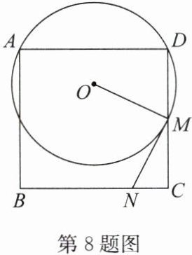 8.(2024·徐州期末)如图,半径为$2\sqrt{3}的\odot O经过正方形ABCD的两个顶点A$,$D$,与边$CD交于点M$,过点$M作\odot O的切线交BC于点N$,若$\angle CMN= 30^{\circ}$,则$BN$的长为______