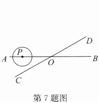 7. 如图,直线$AB$,$CD相交于点O$,$\angle AOC= 30^{\circ}$,圆$P的半径为1cm$,动点$P在直线AB上从点O左侧且距离点O6cm$处,以$1cm/s$的速度向右运动,当圆$P与直线CD$相切时,圆心$P$的运动时间为