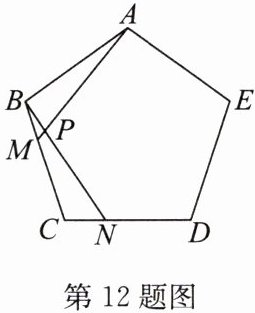 12. 如图,点M,N分别是正五边形ABCDE的边BC,CD上的点,且$BM= CN$,AM交BN于点P.