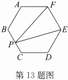 13. 如图,在边长为2 cm的正六边形ABCDEF中,点P在BC边上,求$\triangle PEF$的面积.