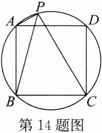 14. 如图,已知P为正方形ABCD的外接圆的$\overset{\frown}{AD}$上任意一点,求证:$\frac{PA+PC}{PB}$为定值.