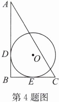 4.如图,在Rt△ABC中,∠B= 90°,∠A= 30°,AB= 6,半径长为$\sqrt{3}$的⊙O与边AB,BC相切,切点分别为D,E,若⊙O向右平移t个单位长度后与边AC相切,则t的值是(