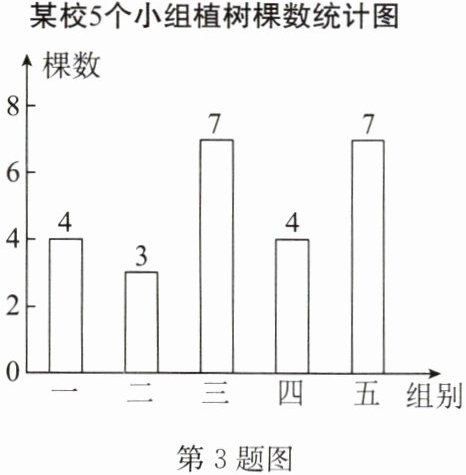 3. 某校5个小组在一次植树活动中植树棵数的统计图如图所示,则平均每组植树