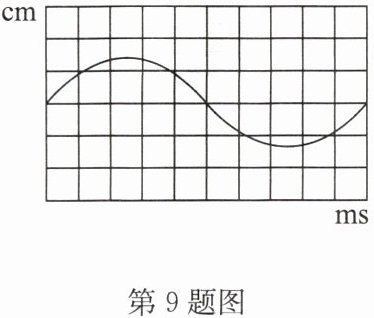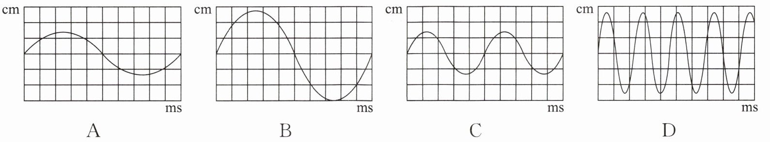 9. 甲音叉发声时振动频率为256Hz,乙音叉发声时每分钟振动30720次,若将甲、乙音叉发出的声音分别输入同一设置的示波器,已知甲音叉发声的波形如图所示,则乙音叉发声的波形可能是 (