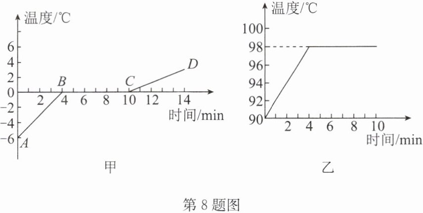 8. (2024秋·玄武区期中)甲、乙两图分别是根据探究冰的熔化和水的沸腾实验数据绘制的图像,根据图像信息,下列分析正确的是(