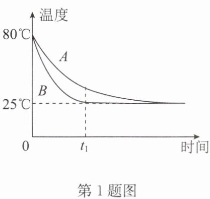 1.(2024秋·南京市期末)为比较A、B两保温杯的保温性能,小南在两个保温杯中分别倒入初温相同、质量相等的热水,测得水温随时间变化的图像如图.由图像可知 (