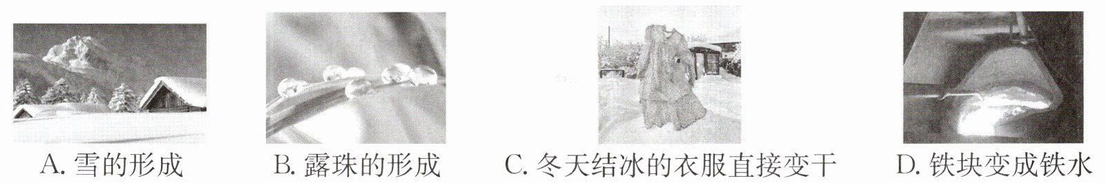 4. (2024秋·姜堰区期中)诗句“一朝秋暮露成霜”,描述了“霜降”这一节气前后的气温变化.下列对诗句中所涉及的自然现象分析正确的是(