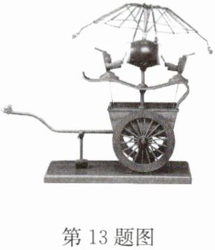 13. 如图是中国古代的计程车“记里鼓车”. 当车走一里时,车上的木人就敲一下鼓,鼓面由于