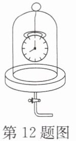 12. (2024·无锡)如图所示,将正在响铃的闹钟悬挂在与抽气机相连的密闭玻璃罩内,听到的声音是闹铃