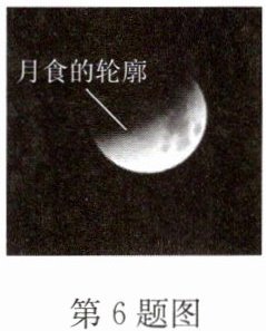 6. 如图是月偏食的示意图,月食轮廓是弯曲的圆弧. 下列事实与圆弧的形成无关的是 (
