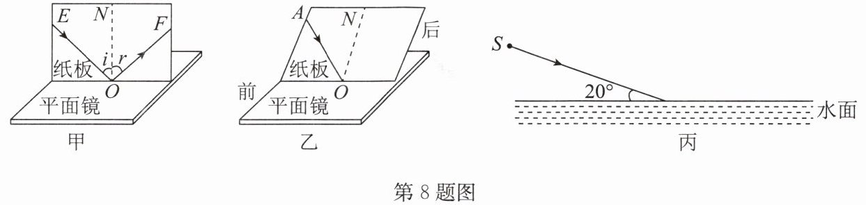 7. 在“探究光的反射规律”实验中,平面镜水平放置,白纸板要
