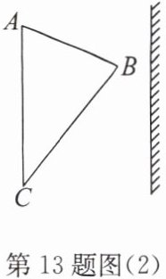 (2) 根据平面镜成像特点画出三角板 $ ABC $ 在平面镜中所成的像.