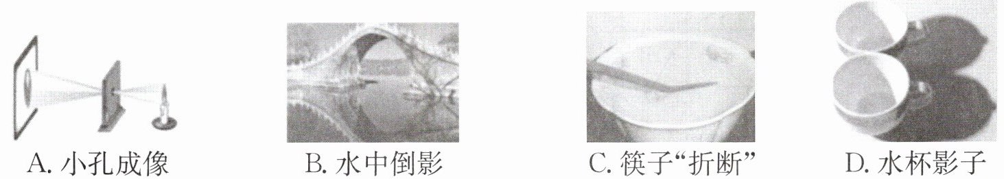 3.光与影的世界是生活也是艺术,更包含着科学的知识与原理.如图是汤勺放入装有水的玻璃杯中,置于平面镜前的情景.下列现象与原理相对应的是 (