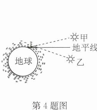 4.(2024秋·惠山区期末)诗句“大漠孤烟直,长河落日圆”给我们展现了一幅美丽的画卷.其实诗人观察到的落日并非太阳的实际位置(如图所示),而是太阳光经过大气层发生