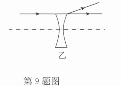 9. (2024秋·盱眙县期中)如图甲和乙所示. 小明在阳光下研究透镜对光的作用,将透镜正对太阳光,移动与透镜平行的白纸,在白纸上得到了如图丙所示的现象. 则该同学所用的透镜为