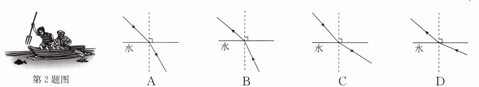 2. 有经验的渔民都知道:只有瞄准看到的鱼的下方才能叉到鱼. 对此做法解释正确的光路图是(