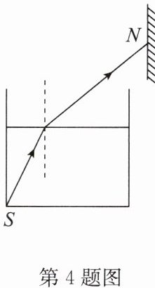 4. (2025·无锡市模拟)如图,鱼缸底部点光源S发出的光线经过水面照亮挡板上N点,当鱼缸内水面上升高度d后,挡板上M点(图中未画出)被照亮,则M点和N点间的距离( )