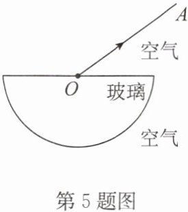 5.(2025·泰州市一模)如图所示,一束光从空气射向半圆形玻璃砖的圆心,OA是经玻璃砖上表面反射的光,同时有一部分光通过玻璃砖并从其下表面射出,请完成这束光通过玻璃砖的光路图.