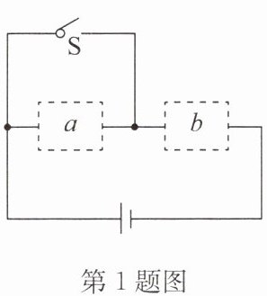 1. 如图所示是一种停车位是否被占用的模拟提醒电路,虚线框内元件一个是灯泡,一个是定值电阻.设计要求无论开关是否闭合,灯泡都能发光,则______(选填“a”或“b”)是灯泡.当车位未被占用时,开关 S 断开;当车位被占用时,开关 S 闭合,此时灯泡______(选填“变亮”或“变暗”).