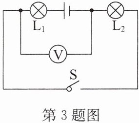 3. 如图所示的电路中,当闭合开关 S 后,电压表测的是(