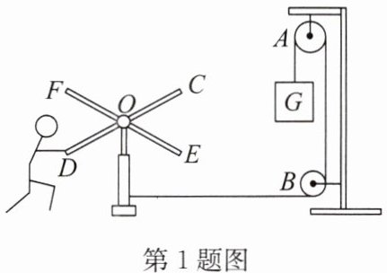 1. 如图所示的机械模型,推动硬棒CD或EF,使它们在水平面内绕轴O转动,即可将绳逐渐绕到轴O上,提升重物G.下列说法不正确的是 (