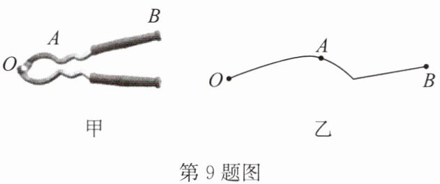 9. (2024·南京期末)按题目要求作图.如图甲所示是一个压核桃钳子,其简化示意图如图乙所示,请在图乙中画出压核桃时的最小动力 $ F_{1} $.