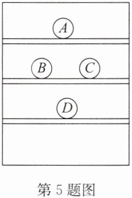 5. (2025·宿城区开学)如图所示,货架上放着A、B、C、D四个体积相同的实心球,其中A和B为铅球,C和D为铁球($\rho_{铅}>\rho_{铁}$).则关于四个实心球的机械能,下列说法不正确的是 (