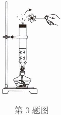 3. (2024·泗阳县期中)如图所示是某科技小组制作的实验装置,将试管中的水加热后,水蒸气从橡皮塞小孔冲出推动风车转动. 在汽油机的四个冲程中与水蒸气推动风车转动原理相同的是 (