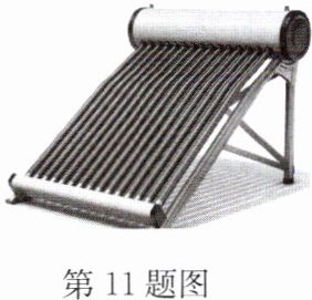 11. 太阳能是 21 世纪重点开发利用的能源之一,如今太阳能热水器已走进千家万户. 如图所示,某家庭太阳能热水器在阳光照射时,平均每小时吸收 $ 7.0×10^{6}J $ 的太阳能,若热水器吸收 $ 8h $ 的太阳能,可以使质量为 $ 100kg $ 的水温度升高 $ 50^{\circ}C $. 已知水的比热容 $ c_{水}= 4.2×10^{3}J/(kg\cdot^{\circ}C) $,天然气的热值 $ q= 3.5×10^{7}J/m^{3} $.