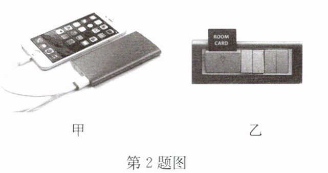 2. 如图甲,一个充电宝正在给手机电池充电,此时充电宝相当于电路中的