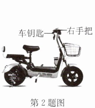 2. (2024·沭阳县期末)如图为人们所喜爱的电动自行车,它具有轻便、节能、环保等特点. 只要将图中车钥匙插入锁孔并顺时针旋转一下,车子就通电了,车钥匙相当于电路中的