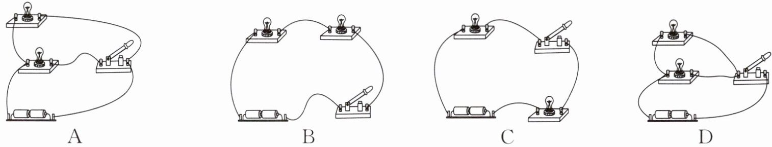 1. 如图所示为怎样使两个小灯泡亮起来的实验电路,两个灯泡的连接方式是