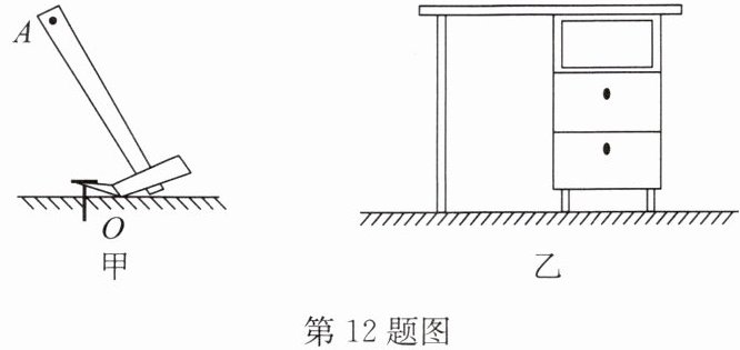 12. (1)如图甲所示是羊角锤的示意图,请画出用羊角锤撬铁钉时,作用在A点的最小动力F的示意图及其力臂l.