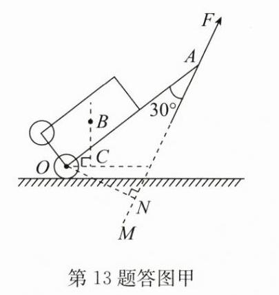 (1)如答图甲所示,反向延长F画出力的作用线AM,然后过支点作力的作用线的垂线段ON,则F的力臂就是ON,