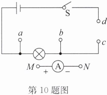 10. 如图所示,a、b、c、d为电路中的四个接线点,若用电流表测量通过小灯泡的电流,则下列电流表的M、N接线柱与电路中各接线点的连接关系中正确的是(