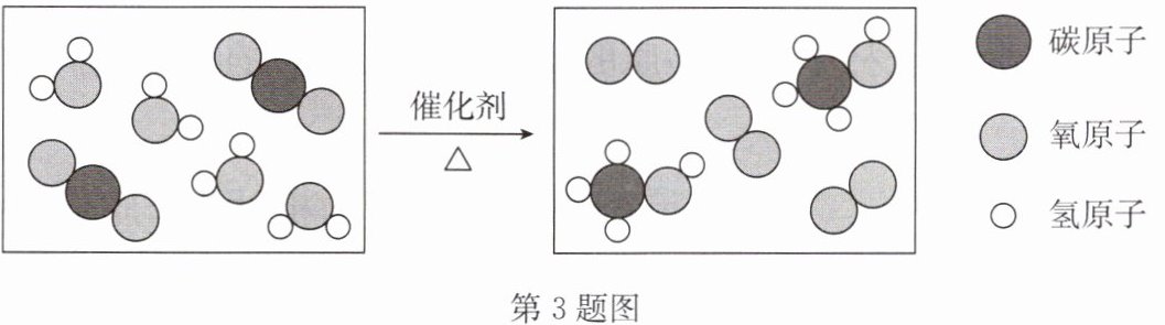 3. B 捕集工业废气中的$CO_{2}$与$H_{2}O$反应制甲醇是保护环境、节约资源的重要方法。反应的微观示意图如下: