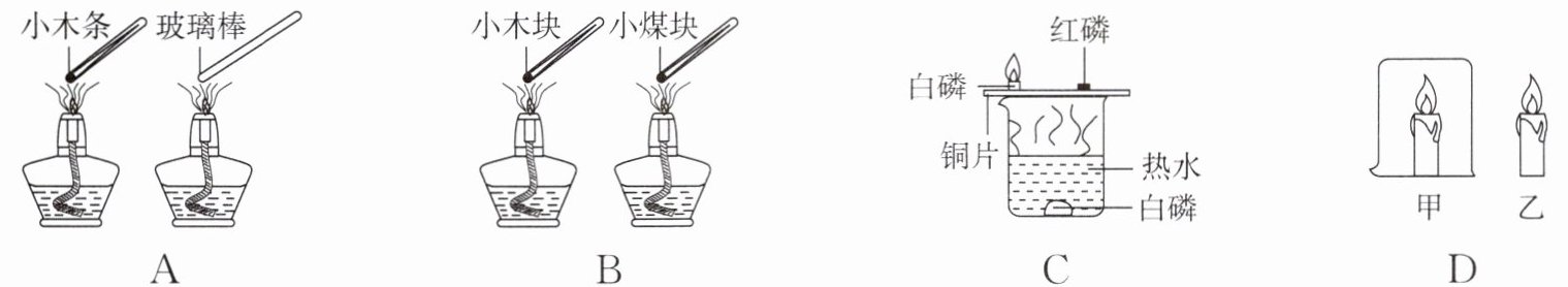 1. A 下列探究燃烧条件的实验中,只能得出“燃烧需要温度达到可燃物的着火点”的是(