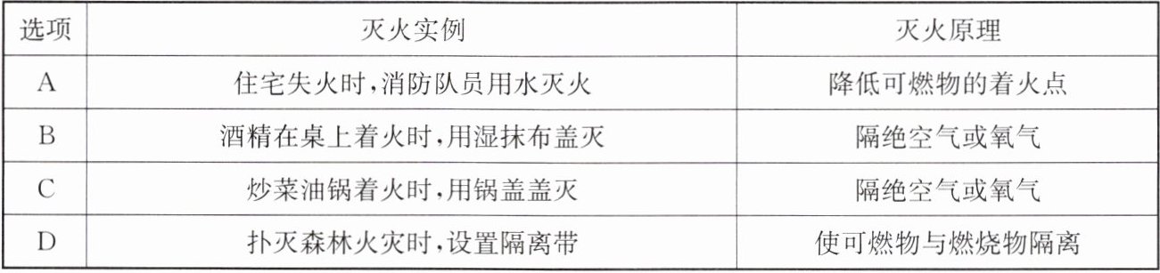 4. A 应用化学知识能有效预防和控制火灾,对灭火实例的灭火原理解释不正确的是(