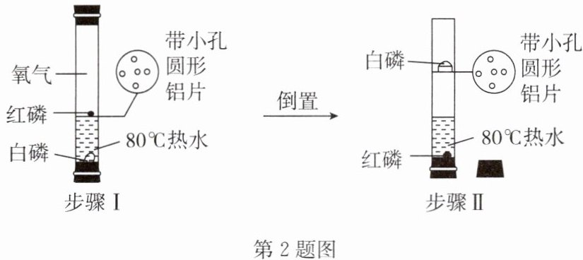 2. A (2024·兴化市期中)如图是研究燃烧条件的实验,已知白磷和红磷的着火点分别为$40^{\circ }C$、$240^{\circ }C$。下列说法正确的是(