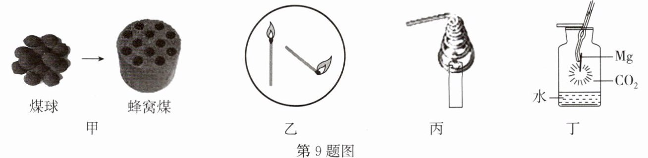 )A.如图甲中将煤球变成蜂窝煤后再燃烧,其目的是延长煤燃烧的时间
