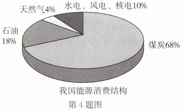 4. 如图是某年我国能源消费结构比例图。下列有关说法正确的是(