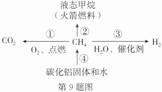 9. (2024·京口区校级月考)如图为 CH₄(甲烷,天然气的主要成分)的转化和资源化利用。下列说法不正确的是(