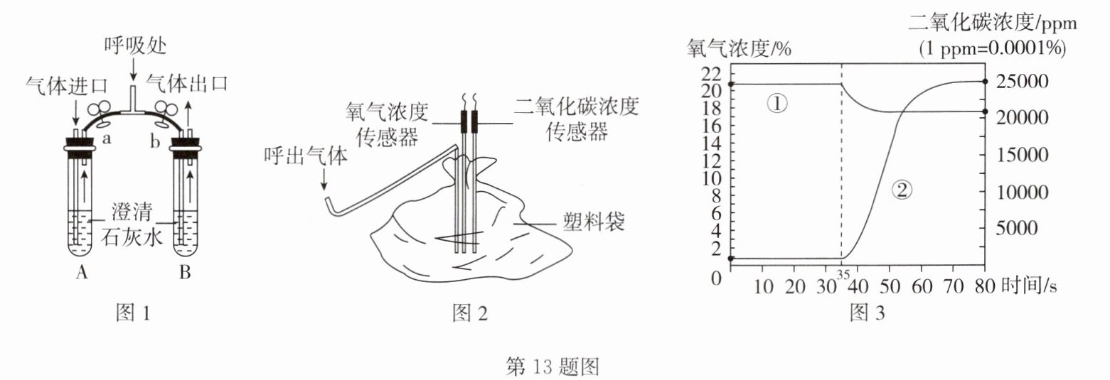 13. B兴趣小组同学设计实验分析吸入气体和呼出气体的成分变化。