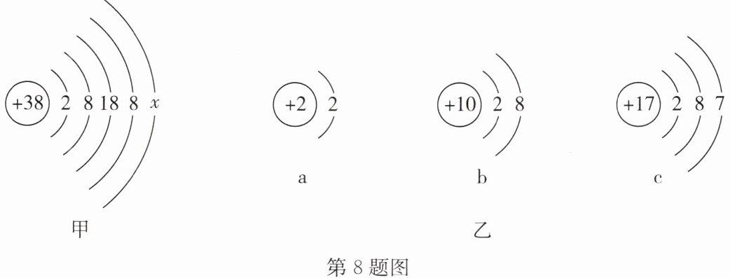 8. A 科学家研制出了世界上最精确的锶原子光晶格钟。锶的原子结构示意图如图甲所示。