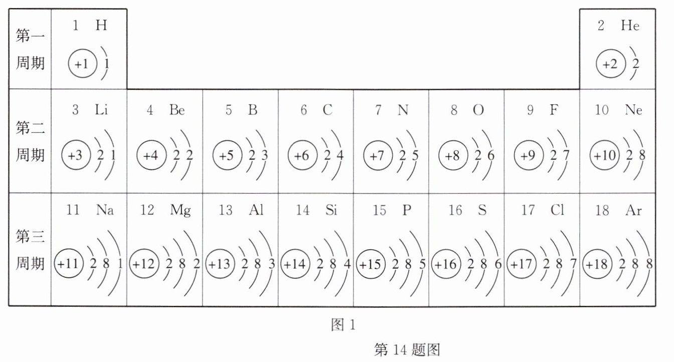 14. 元素周期表是学习和研究化学的重要工具,请分析图中的信息并回答有关问题。