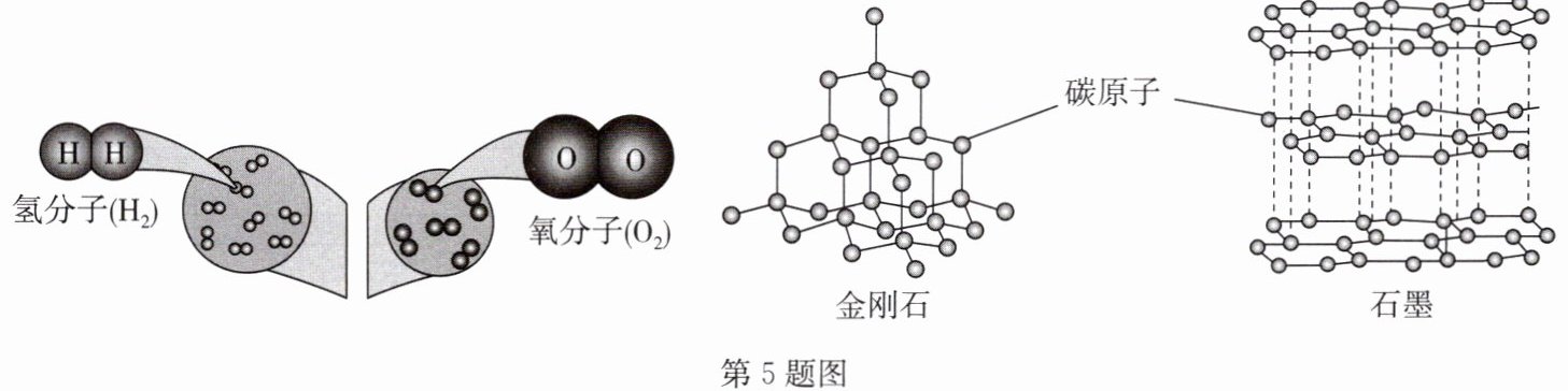 5. B 下列图例分别为氢气、氧气、金刚石与石墨的微观结构图,下列说法错误的是 ()