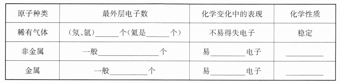 (3)不同原子的最外层电子数及在化学变化中的表现:
