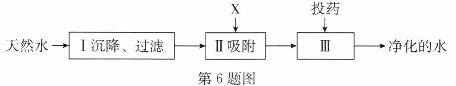 5. A 城市中的生活用水是经自来水厂净化处理过的,其过程可表示为取水→沉降→过滤→吸附→消毒→配水。下列过程属于化学变化的是 (